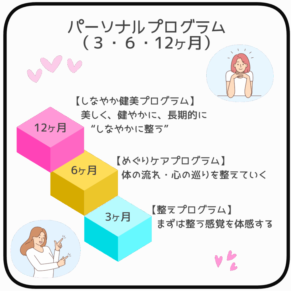 台湾式足もみ(官足法)・健康体操、骨盤底筋トレーニング、望診からの食事指導を融合し、一人ひとりに寄り添うトータルケアでご提供しています。